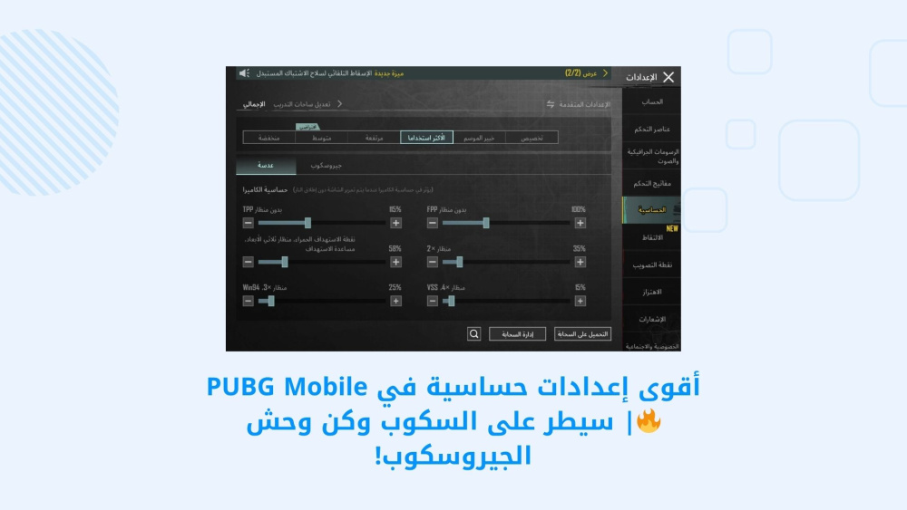 في عالم PUBG Mobile، الفارق بين "نوب" و"وحش" مش مجرد عدد الكيلات أو عدد الرومات اللي كسبتها، لكن في حاجات صغيرة جدًا بتفرق جامد… أهمها؟ إعدادات الحساسية! الحساسية مش حاجة ثانوية أو اختيارية… دي الأساس اللي بتبني عليه أسلوب لعبك كله.وعلشان كده، لما تظبط إعداداتك بشكل يناسب طريقة لعبك، هتحس إنك ماسك الموبايل وإيدك بتشتغل أوتوماتيك، سكوبات بتتفتح لوحدها، وعدوك بيطيح قبل ما ياخد نفس 😎 وطبعًا، ماينفعش نتكلم عن الحساسية من غير ما نربطها بإعدادات البيئة داخل اللعبة زي الجرافيك، نوع التحكم، والـ FPS… كل دي حاجات بتكمل بعضها وبتأثر على مستوى أدائك بنسبة كبيرة جدًا. شرح الحساسية إيه هي الحساسية أصلاً؟هي مدى استجابة الكاميرا أو السكوب لحركتك على الشاشة، وبتتقسم لعدة أنواع، كل واحدة ليها وظيفة مهمة في اللعب: 🔹 حساسية الكاميرا (Camera): لما تتحرك يمين وشمال وانت مش فاتح سكوب. 🔹 حساسية ADS (Aim Down Sight): لما تكون بتضرب وانت فاتح سكوب، ودي أهم وحدة. 🔹 حساسية الجيروسكوب: لو بتلعب جيرو، دي بتحدد قد إيه ميل الموبايل هيأثر على التصويب. كل ما تزود الحساسية، الكاميرا بتلف أسرع، بس هتفقد شوية من الدقة، ولو قللتها، هتاخد وقت تلف حوالين نفسك بس هتتحكم بدقة أعلى. السر هو إنك تلاقي التوازن اللي يناسبك إنت. مثال بسيط:لو إنت سريع الحركة وبتحب الاندفاع، خلي الحساسية عالية.لو إنت بتحب اللعب التكتيكي والـ one tap headshots، خلي الحساسية متوسطة وثابتة. مميزات الحساسية متستهنش بكلمة "الحساسية"، لإنها ممكن تفرق بينك وبين خصمك في جزء من الثانية: ✅ سيطرة أعلى على الريكويل: تقدر تمسك السلاح بثبات وتظبط الطلقات في الرأس. ✅ حركة سلسة وسريعة: تقدر تلف على عدو وراك وتفاجئه قبل ما يشوفك. ✅ استجابة أسرع للتهديدات: لما حد يضربك فجأة، تقدر تفتح السكوب وترد بسرعة. ✅ دقة في الـ Quick Scope: لو إنت من محبي القناصات، إعدادات الحساسية بتحدد كل شيء. ✅ أداء ثابت على كل الأجهزة: لما تزبط إعداداتك حسب مواصفات موبايلك، هتتفادى اللاج أو التقطيع. كيفية استخدام الحساسية كتير ناس بتدخل الإعدادات، وتختار إعدادات يوتيوبر مشهور وخلاص… بس ده غلط كبير!إعدادات الحساسية لازم تكون مخصصة ليك، لجهازك، ولطريقة لعبك.إزاي تظبطها؟ تعالى أقولك على الطريقة الصح: 1. حدد نوع تحكمك: بتلعب 2 أصبع؟ ولا 3؟ ولا 4 أصابع؟ بتستخدم جيروسكوب؟ ولا لأ؟كل ده بيأثر على نوع الإعدادات اللي تناسبك. 2. روح ساحة التدريب: جرب تتحرك وتفتح السكوب على دمى ثابتة. شوف الطلق بيروح فين؟ ثابت ولا بيطلع لفوق؟ عدل الحساسية لحد ما تحس إنك متحكم في كل طلقة. 3. خليك واقعي: لو موبايلك قديم، متزودش الحساسية زيادة عشان مش هيستجيب. لو جهازك حديث وفريماته عالية، جرب إعدادات أسرع. 4. استعمل إعدادات مخصصة للأسلحة: في ناس بتظبط إعدادات مختلفة للـ M416 عن AKM. ممكن تحط ADS عالي على القناص، وواطي على الرشاش. رابط الحساسية بدور على إعدادات جاهزة ومجربة من ناس بتلعب على مستوى عالي؟سيبك من التجارب العشوائية، وابدأ مباشرة بأقوى إعدادات من ناس بتطحن سيرفرات. 🔗 أقوى إعدادات الحساسية وجيروسكوب لـ PUBG الإعدادات دي هتساعدك تظبط السكوب من أول طلقة، وتسيطر على الجيم في أي وضع، سواء سكواد أو سولو، أو حتى TDM.